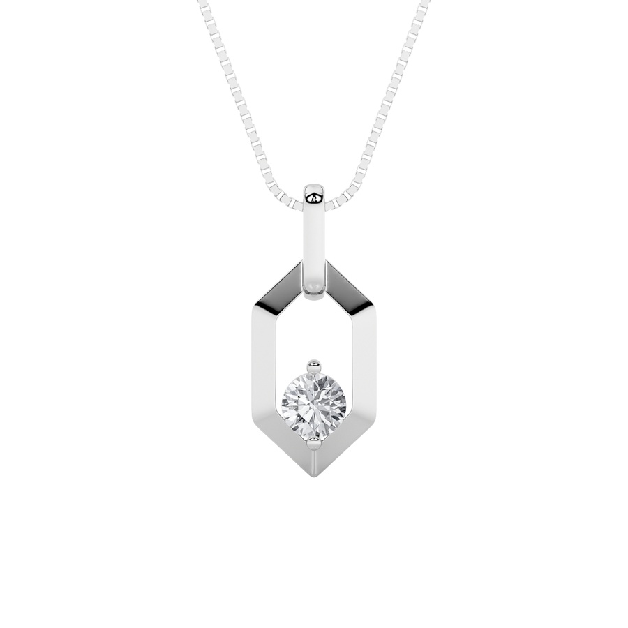 Delicate sparkle meets modern elegance in this 0.25 carat total weight round-shaped lab-grown diamond fancy pendant. Crafted in sleek 14K white gold, the pendant features a brilliant F color, VS clarity diamond that radiates timeless charm. Its unique fancy design adds a touch of sophistication?perfect for layering or wearing solo as a subtle statement.