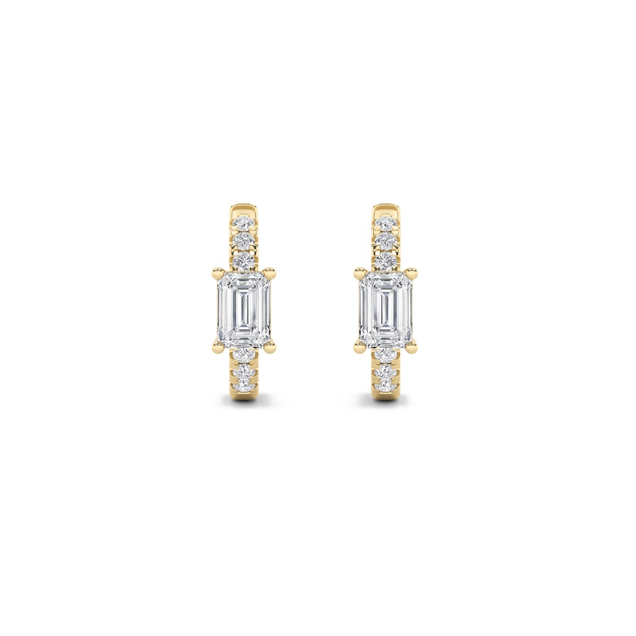 1.5Cttw Emerald Shaped Lab Grown Diamond (F/VS) Solitare Accent Huggie Earrings in 14K Gold