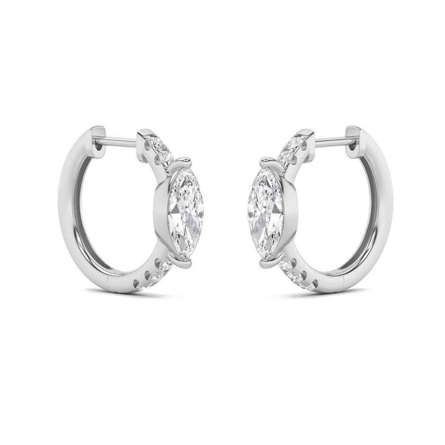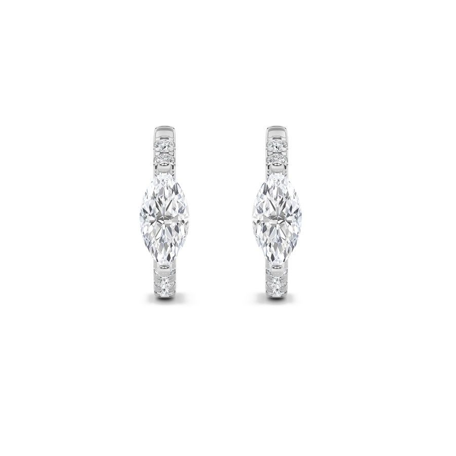 1.5Cttw Marquise Shaped Lab Grown Diamond (F/VS) Solitare Accent Huggie Earrings in 14K Gold