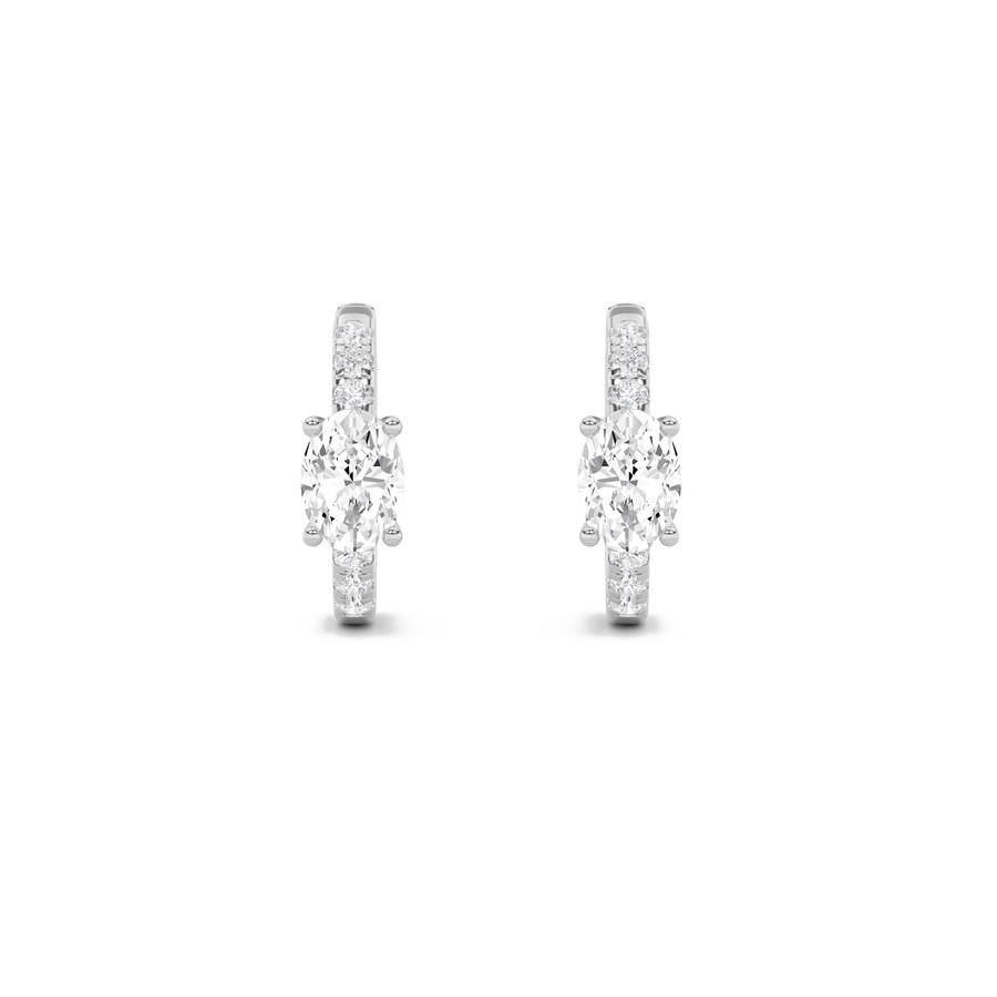 1.5Cttw Oval Shaped Lab Grown Diamond (F/VS) Solitare Accent Huggie Earrings in 14K Gold