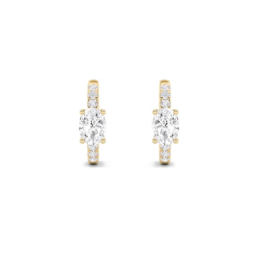 1.5Cttw Oval Shaped Lab Grown Diamond (F/VS) Solitare Accent Huggie Earrings in 14K Gold
