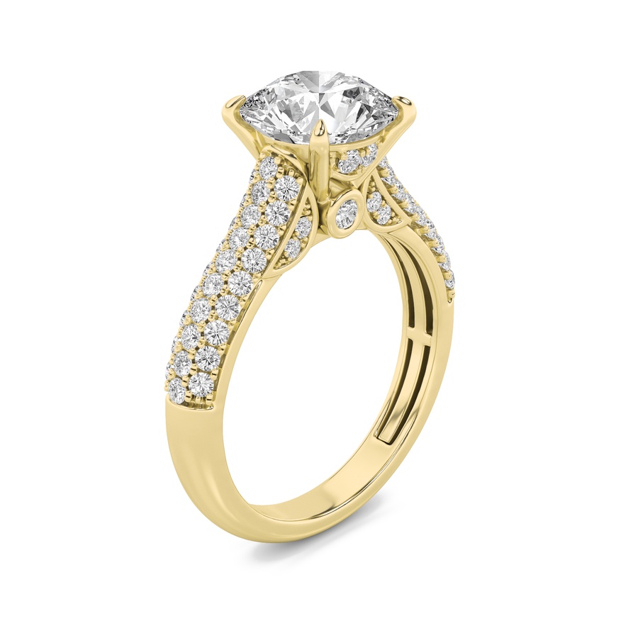 1.5Cttw Round Shaped Lab Grown Diamond (F/VS) Hidden Halo Accented Engagement Ring in 14K Gold