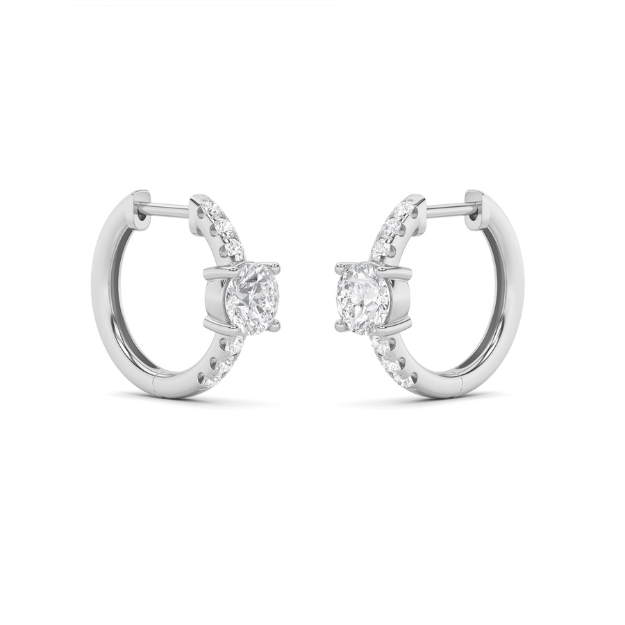 1.5Cttw Round Shaped Lab Grown Diamond (F/VS) Solitare Accent Huggie Earrings in 14K Gold