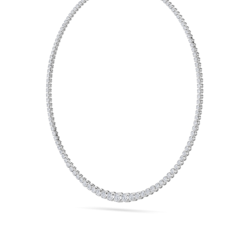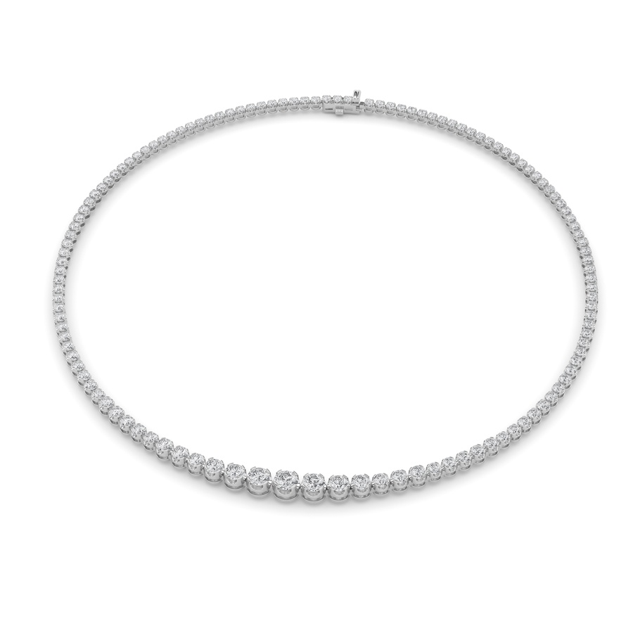 10Cttw Round Shaped Lab Grown Diamond (F/VS) Graduating Full Riviera Necklace in 14K Gold
