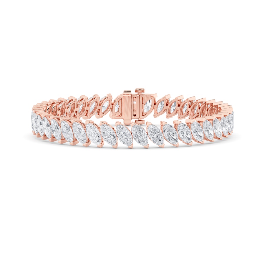 16.5Cttw Marquise Shaped Lab Grown Diamond (F/VS) Angled Line Bracelet in 14K Gold