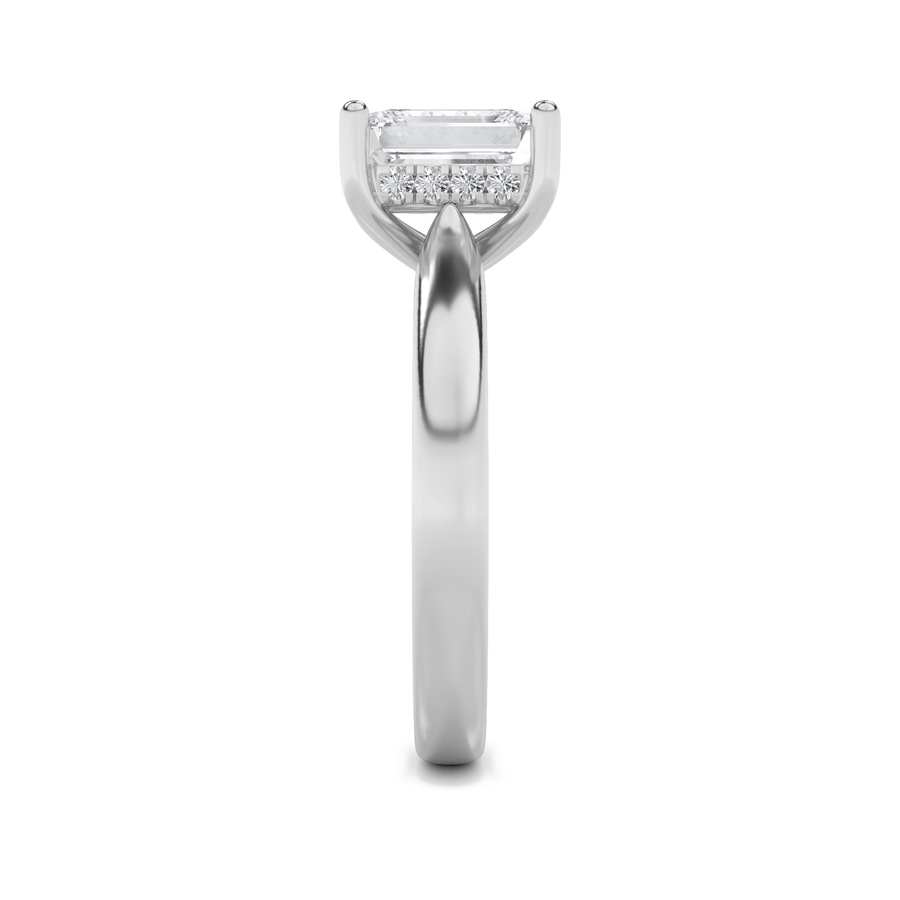 1Cttw Emerald Shaped Lab Grown Diamond (F/VS) Hidden Halo Cathedral Shank Engagement Ring in 14K Gold