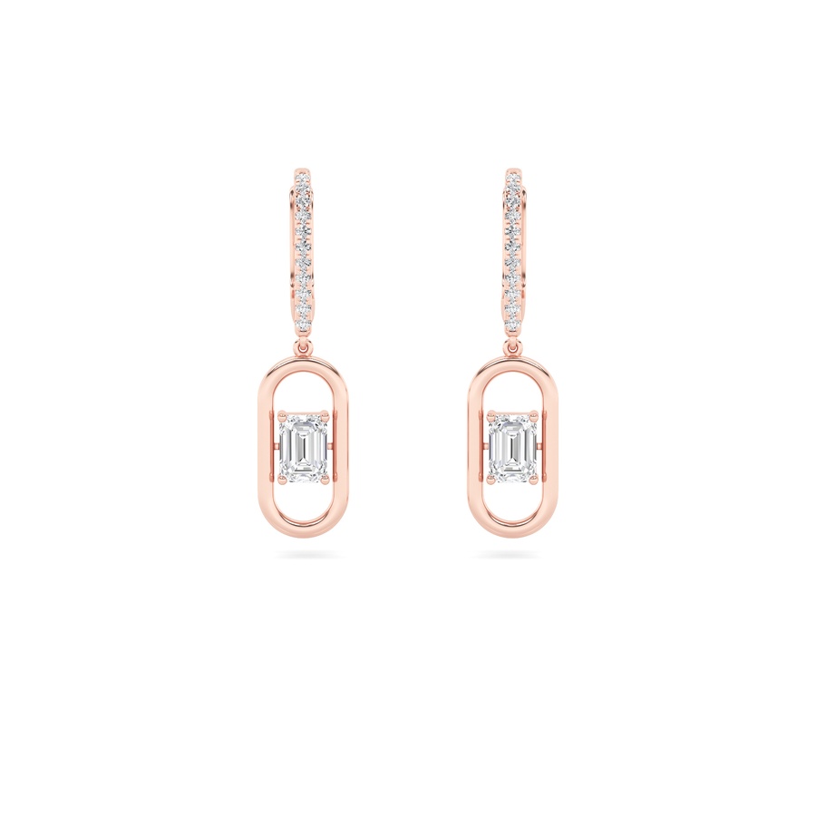 1Cttw Emerald Shaped Lab Grown Diamond (F/VS) Paperclip Dangle Earrings in 14K Gold