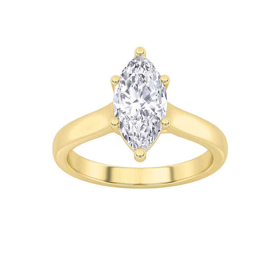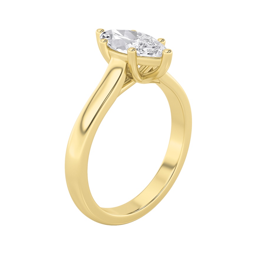 1Cttw Marquise Shaped Lab Grown Diamond (F/VS) Plain Cathedral Trellis Shank Solitaire Engagement Ring in 14K Gold
