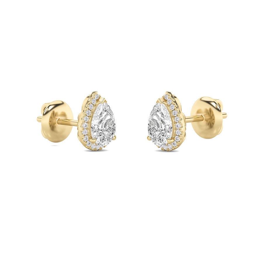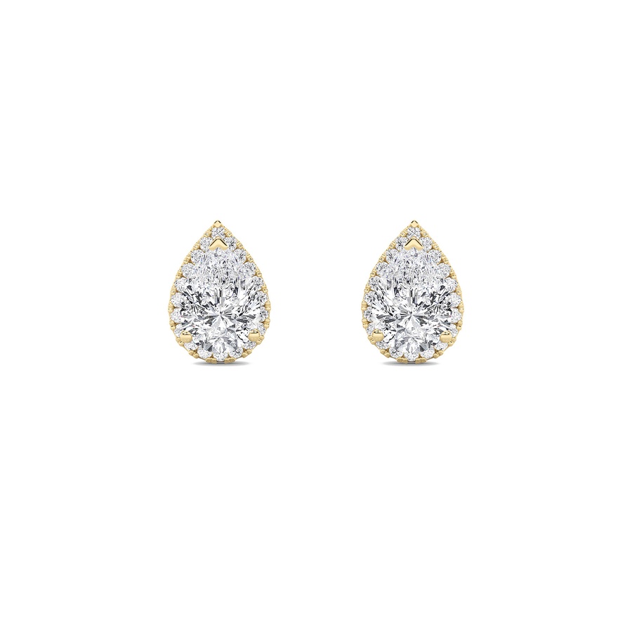 1Cttw Pear Shaped Lab Grown Diamond (F/VS) Halo Stud Earrings in 14K Gold