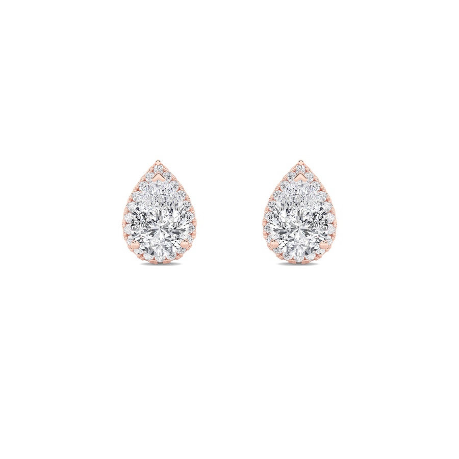 1Cttw Pear Shaped Lab Grown Diamond (F/VS) Halo Stud Earrings in 14K Gold
