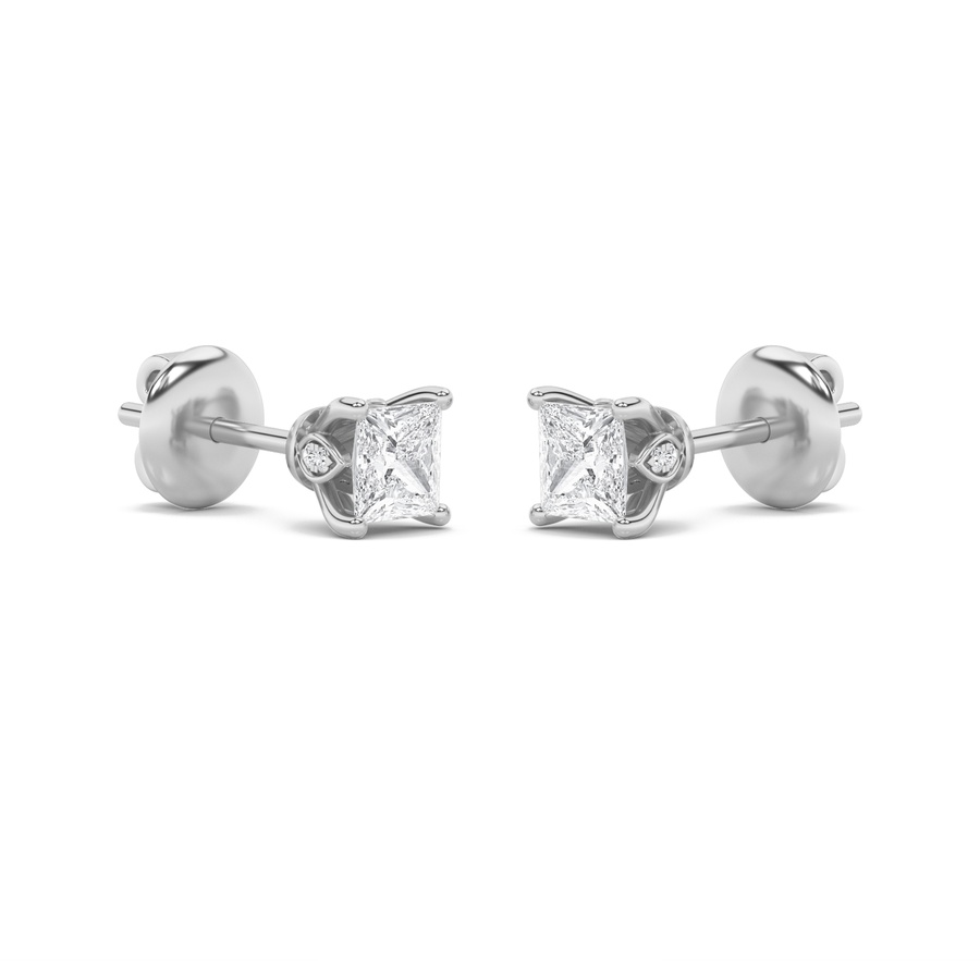 1Cttw Princess Shaped Lab Grown Diamond (F/VS) Tulip Head Stud Earrings in 14K Gold