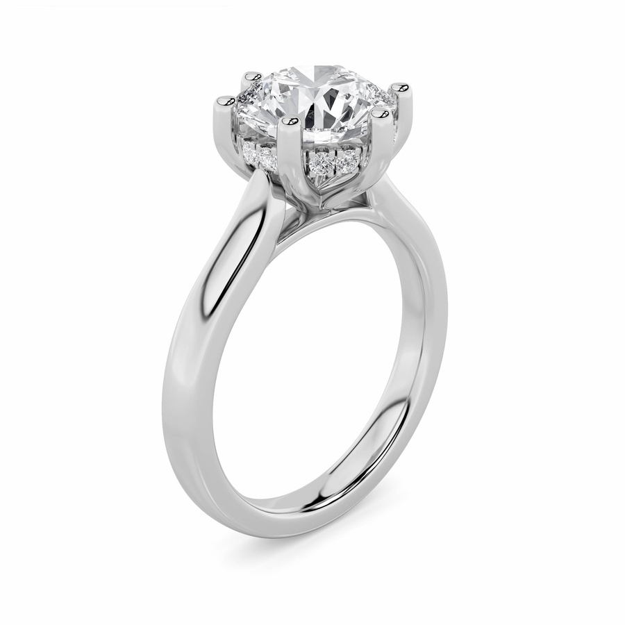 1Cttw Round Shaped Lab Grown Diamond (F/VS) Hidden Halo Cathedral Shank Engagement Ring in 14K Gold