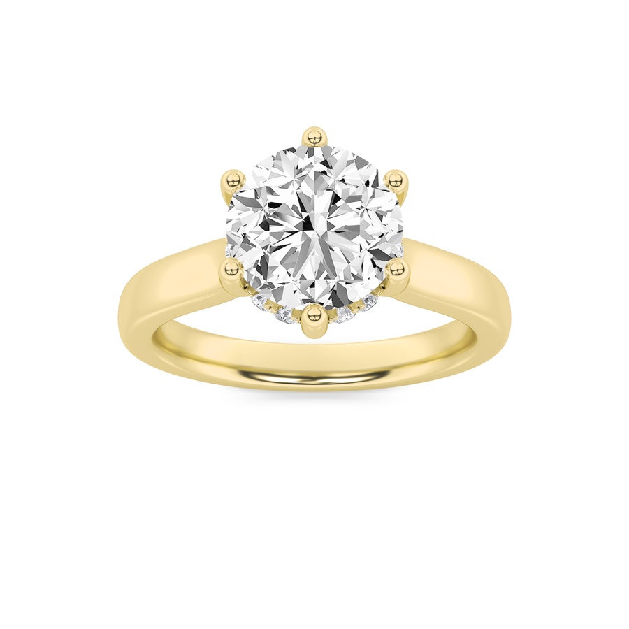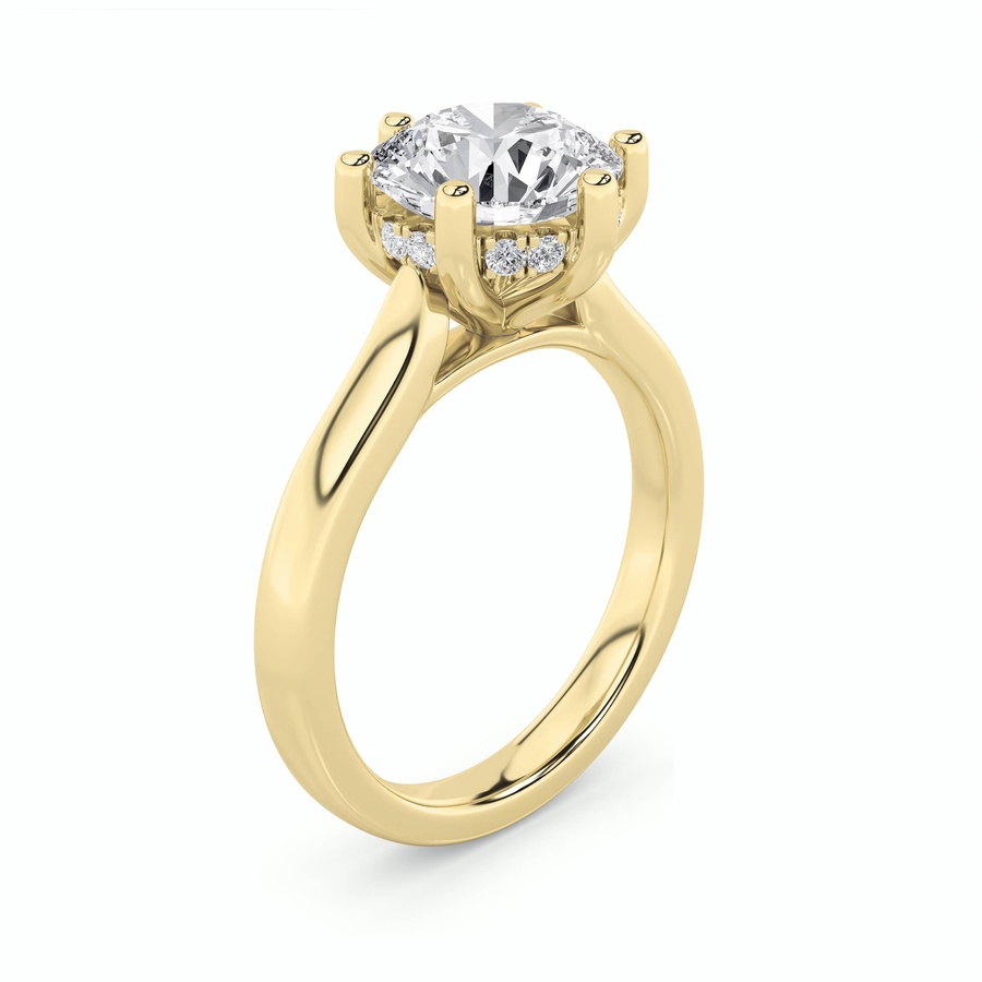 1Cttw Round Shaped Lab Grown Diamond (F/VS) Hidden Halo Cathedral Shank Engagement Ring in 14K Gold