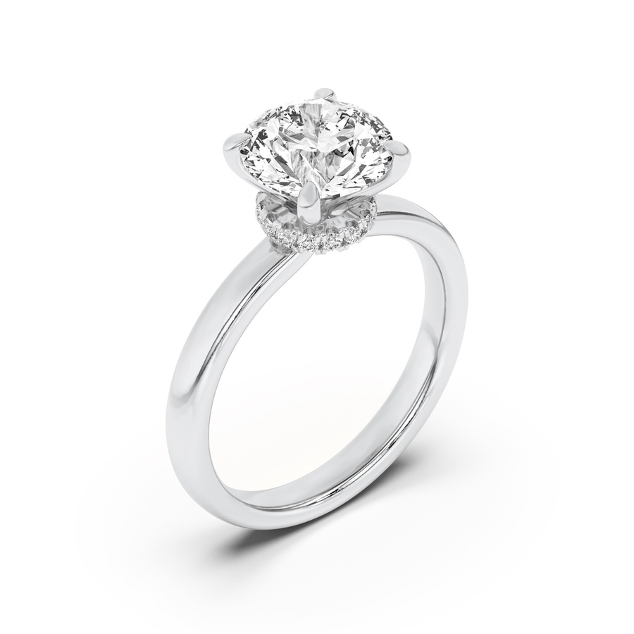 1Cttw Round Shaped Lab Grown Diamond (F/VS) Hidden Halo Plain Shank Engagement Ring in 14K Gold