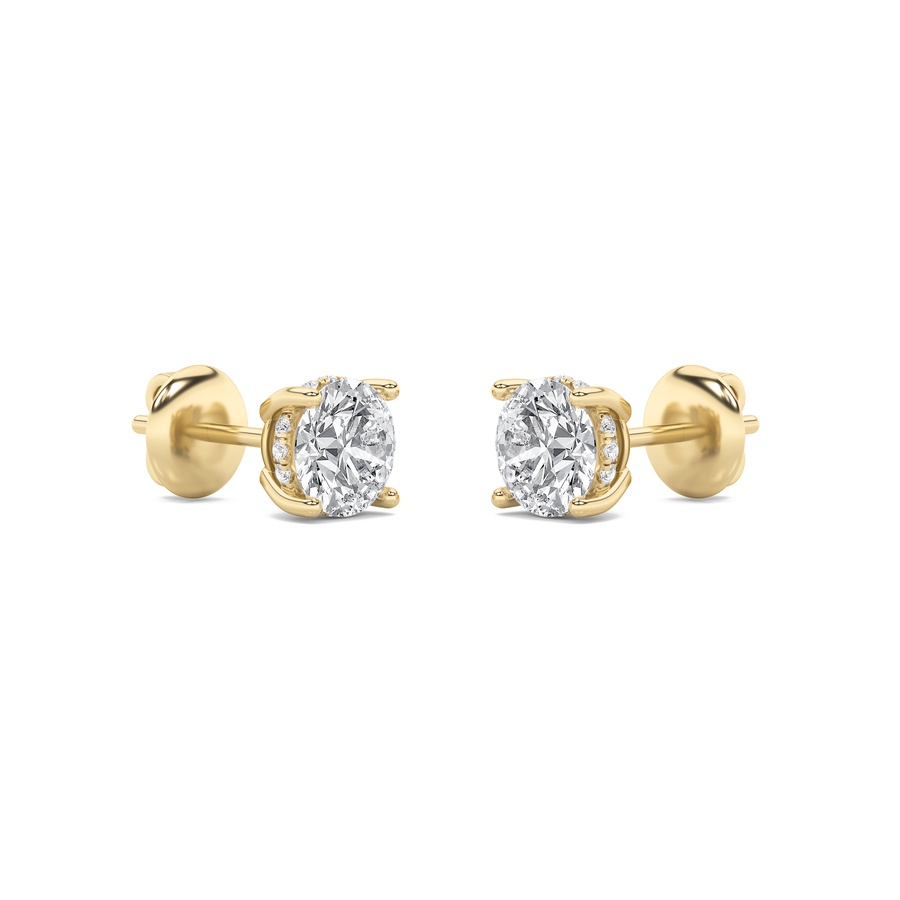 1Cttw Round Shaped Lab Grown Diamond (F/VS) Hidden Halo Stud Earrings in 14K Gold