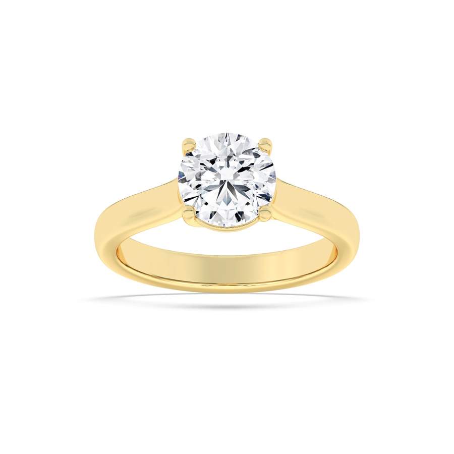 1Cttw Round Shaped Lab Grown Diamond (F/VS) Plain Cathedral Trellis Shank Solitaire Engagement Ring in 14K Gold