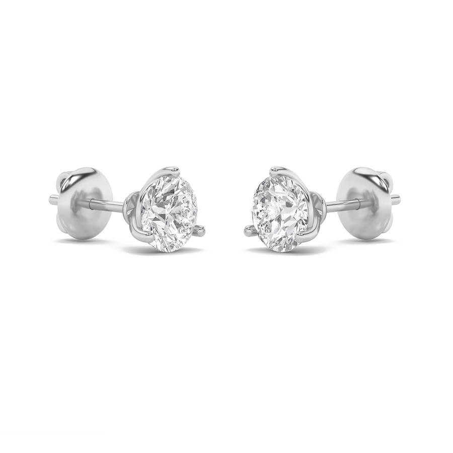 1Cttw Round Shaped Lab Grown Diamond (F/VS) Three Prong Martini Stud Earrings in 14K Gold