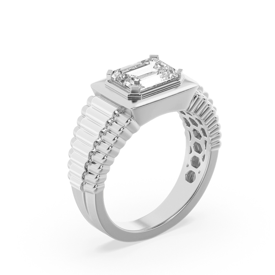 2.5Cttw Emerald Shaped Lab Grown Diamond (F/VS) Mens Ring in 14K Gold