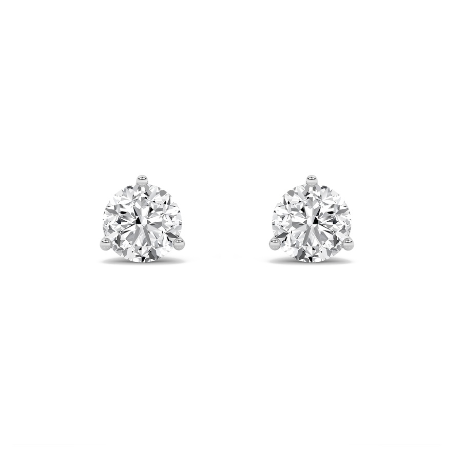 2.5Cttw Round Shaped Lab Grown Diamond (F/VS) Three Prong Martini Stud Earrings in 14K Gold