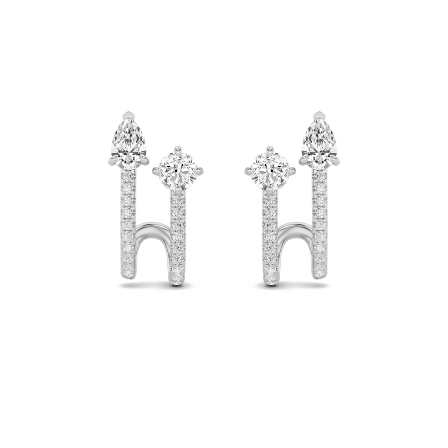2.5Cttw Round Shaped Lab Grown Diamond (F/VS) Toi et Moi Accented Earrings in 14K Gold