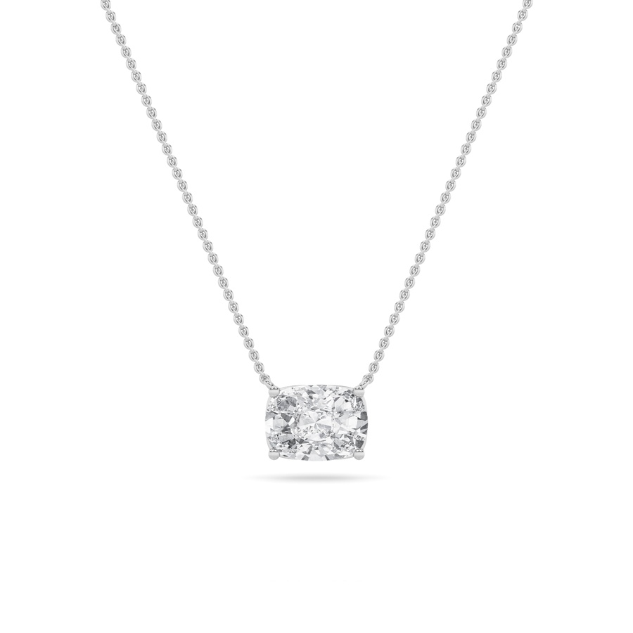 2Cttw Elongated Cushion Shaped Lab Grown Diamond (F/VS) East West Solitaire Necklace in 14K Gold