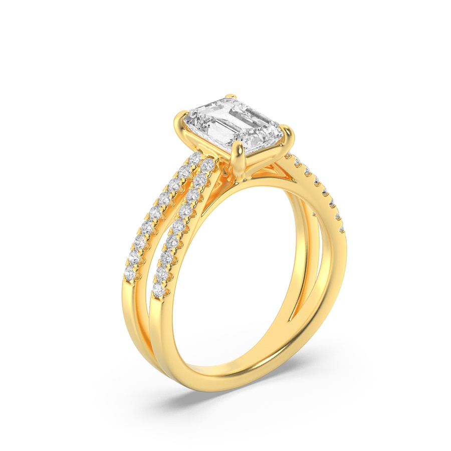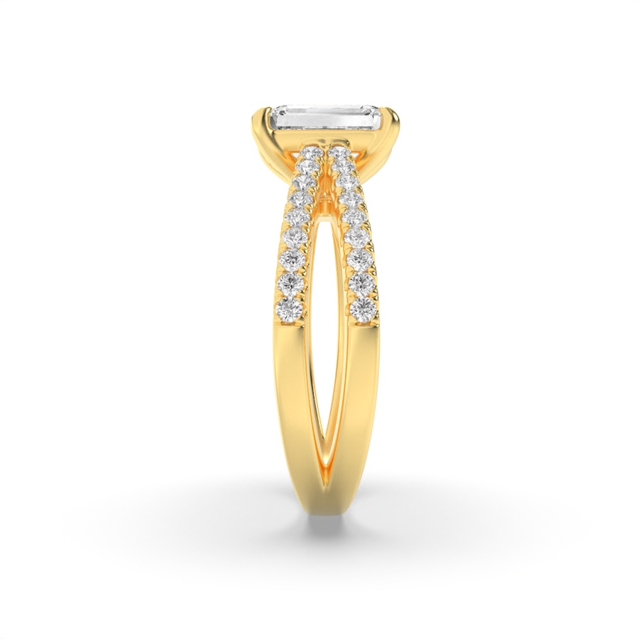 2Cttw Emerald Shaped Lab Grown Diamond (F/VS) Cross Shank Accented Engagement Ring in 14K Gold