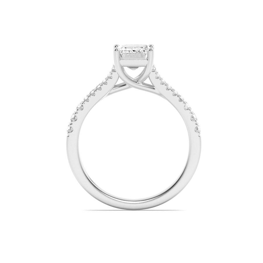 2Cttw Emerald Shaped Lab Grown Diamond (F/VS) Split Shank Trellis Engagement Ring in 14K Gold