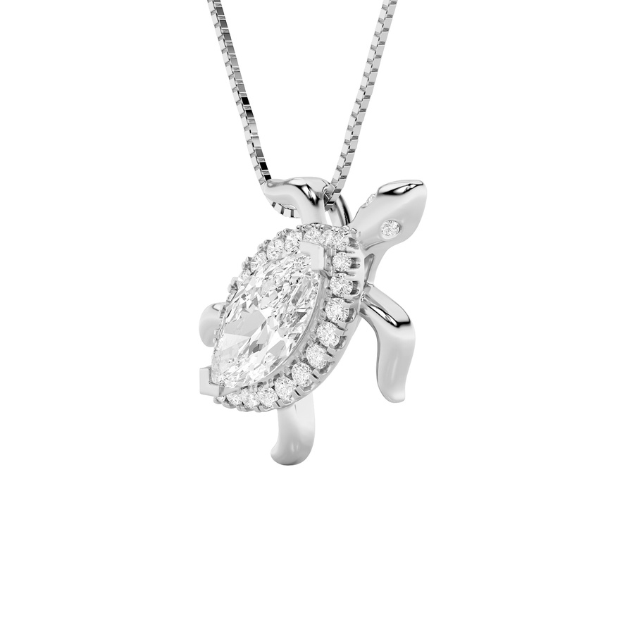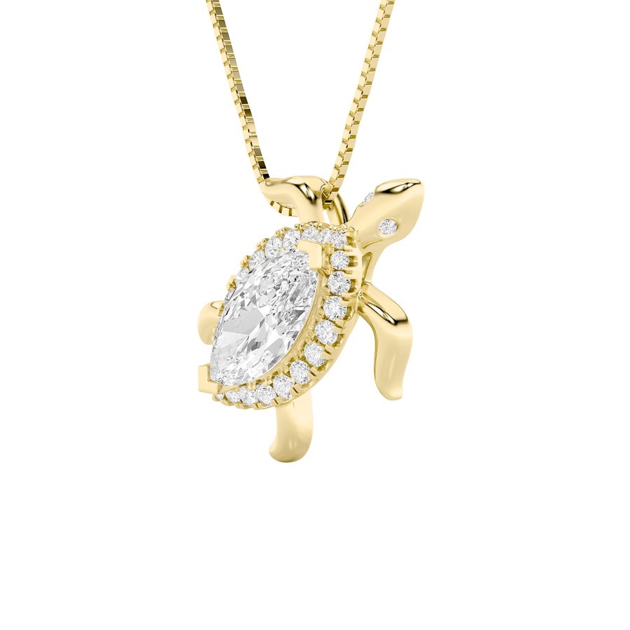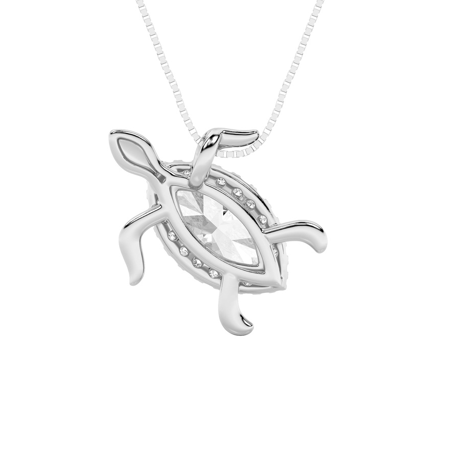 2Cttw Marquise Shaped Lab Grown Diamond (F/VS) Accented Turtle Pendant in 14K Gold