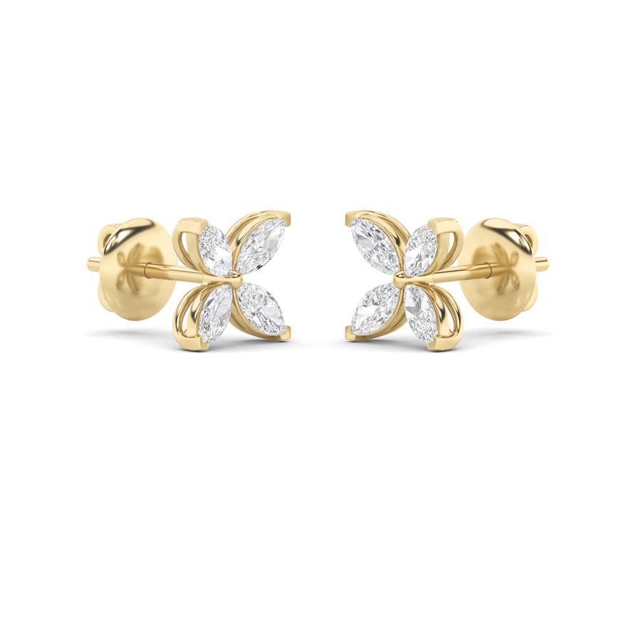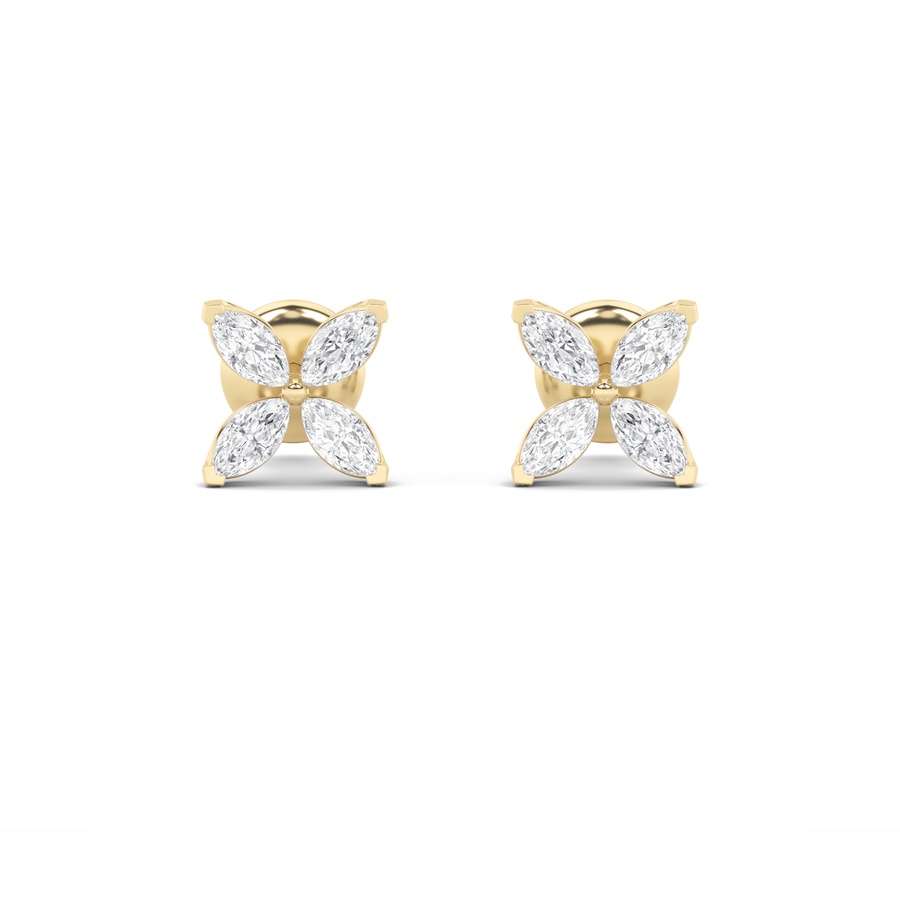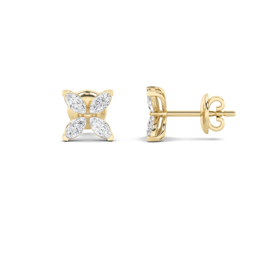 2Cttw Marquise Shaped Lab Grown Diamond (F/VS) Flower Earrings in 14K Gold