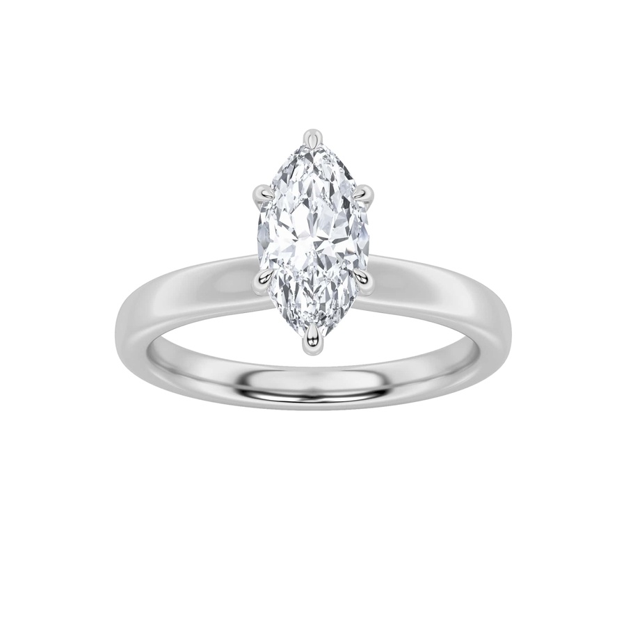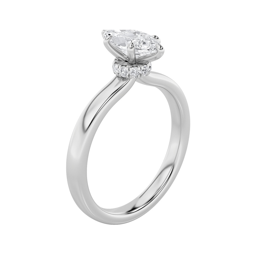 2Cttw Marquise Shaped Lab Grown Diamond (F/VS) Hidden Halo Plain Shank Engagement Ring in 14K Gold