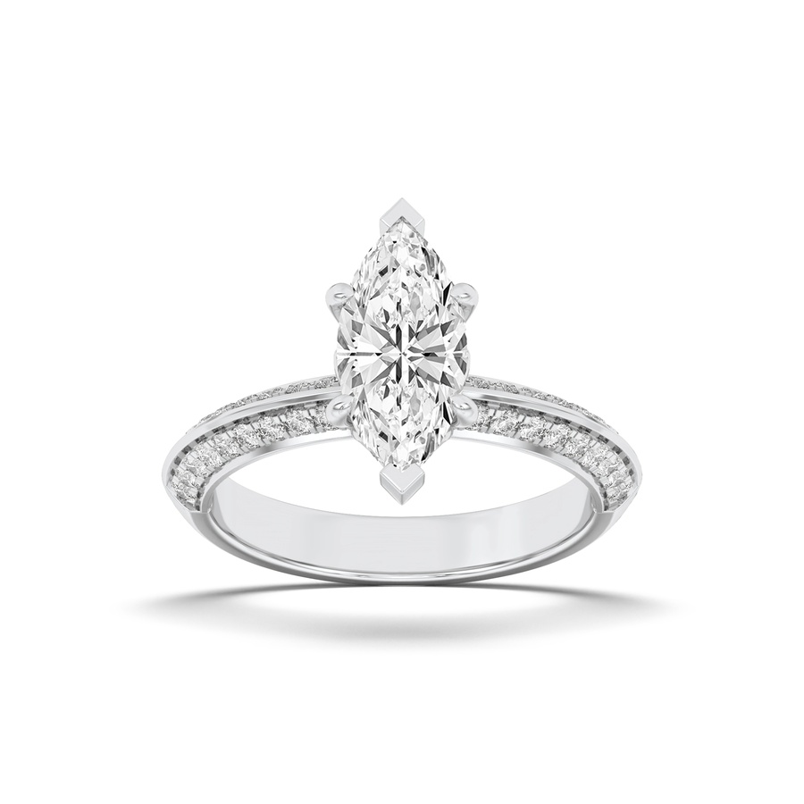 2Cttw Marquise Shaped Lab Grown Diamond (F/VS) Micro Pave Knife Edge Accent Ring in 14K Gold