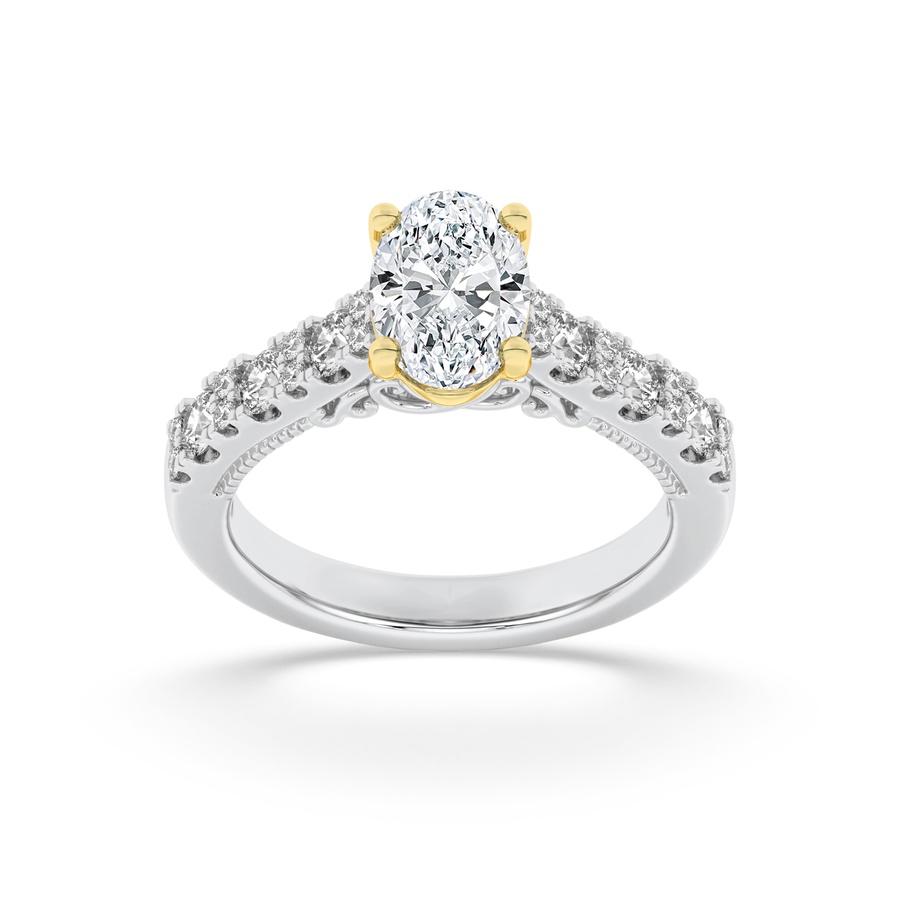 Discover the stunning 2-carat oval-shaped lab-grown diamond engagement ring, featuring exquisite milgrain accents in luxurious 14K gold, available at J&J Diamonds in Huntington Station, NY.