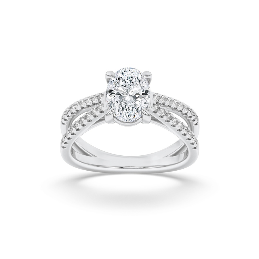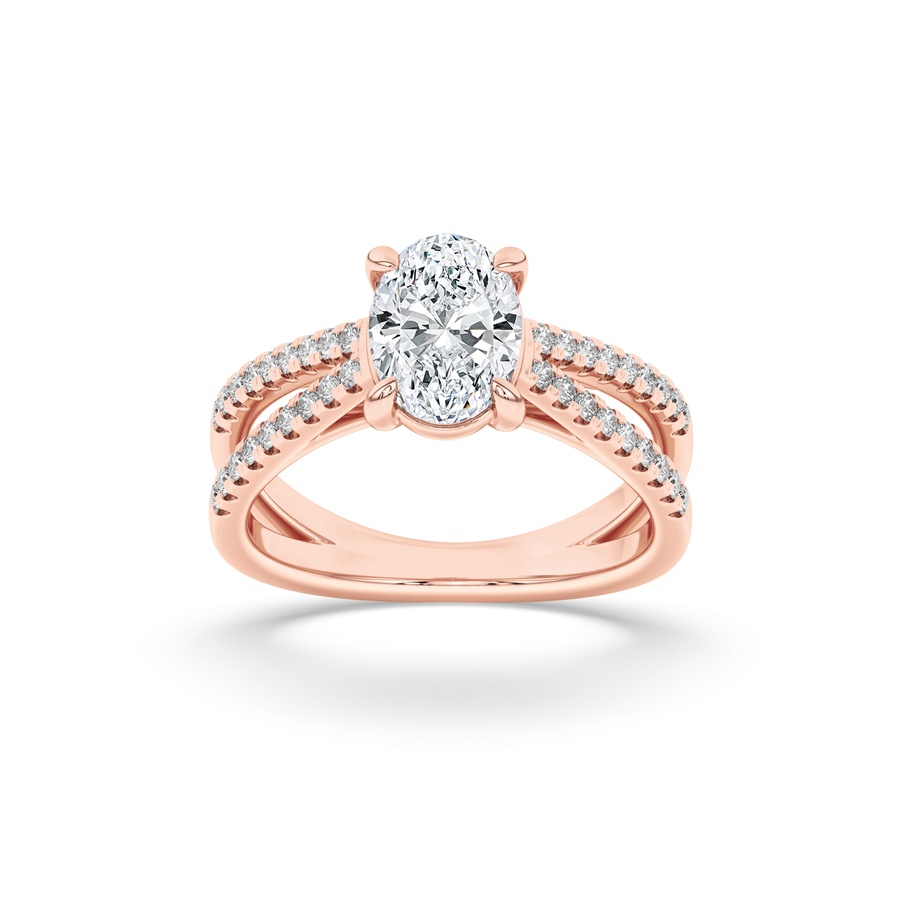 2Cttw Oval Shaped Lab Grown Diamond (F/VS) Cross Shank Accented Engagement Ring in 14K Gold