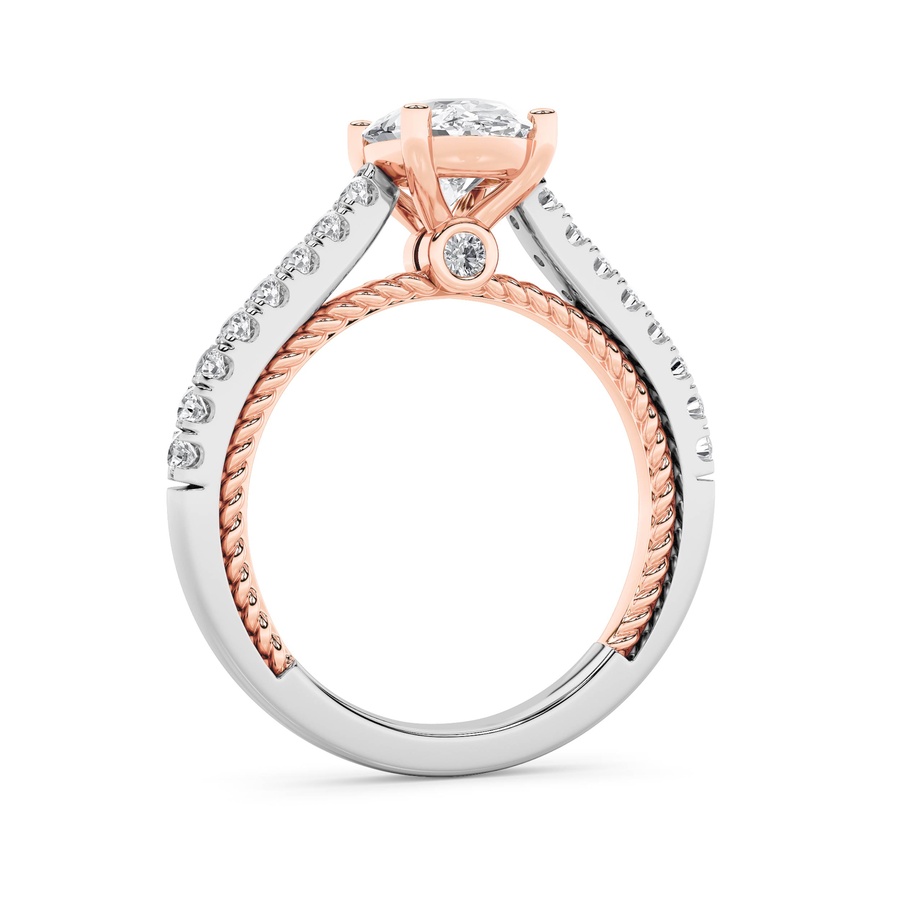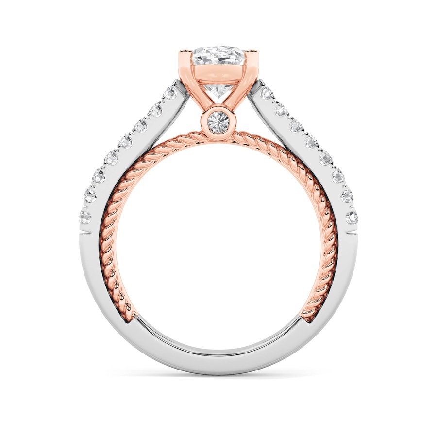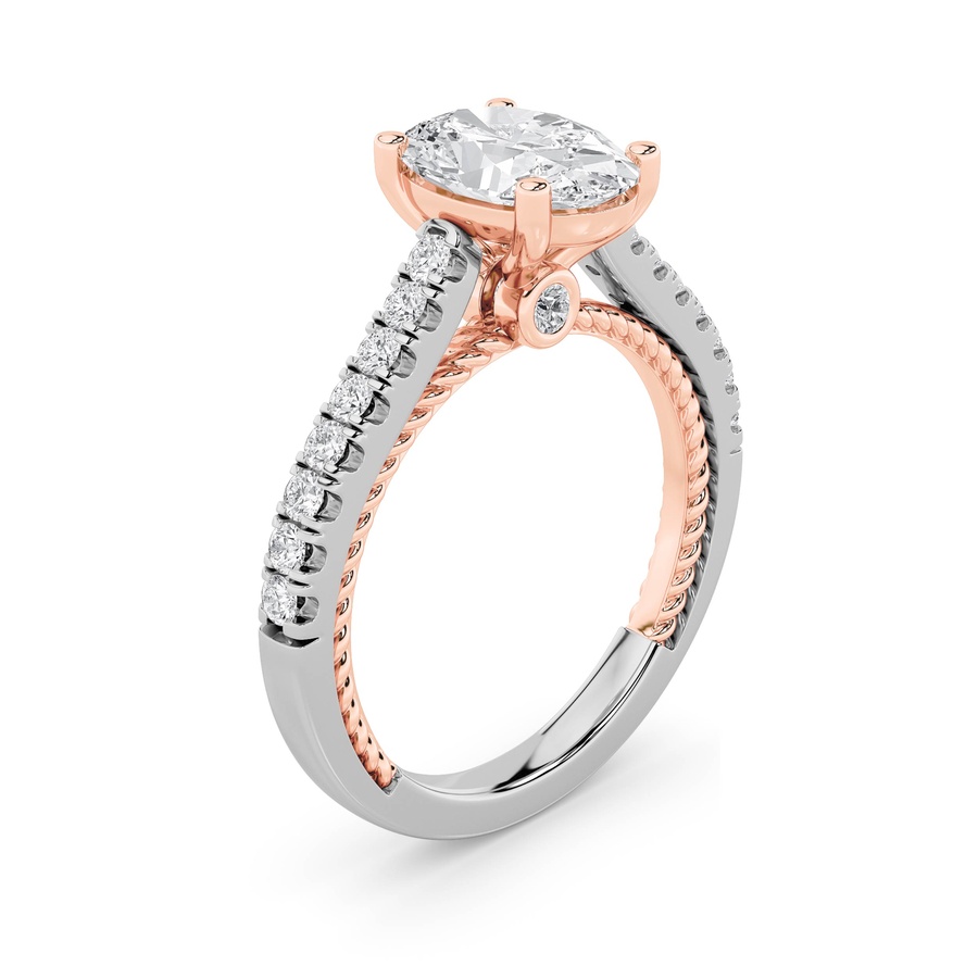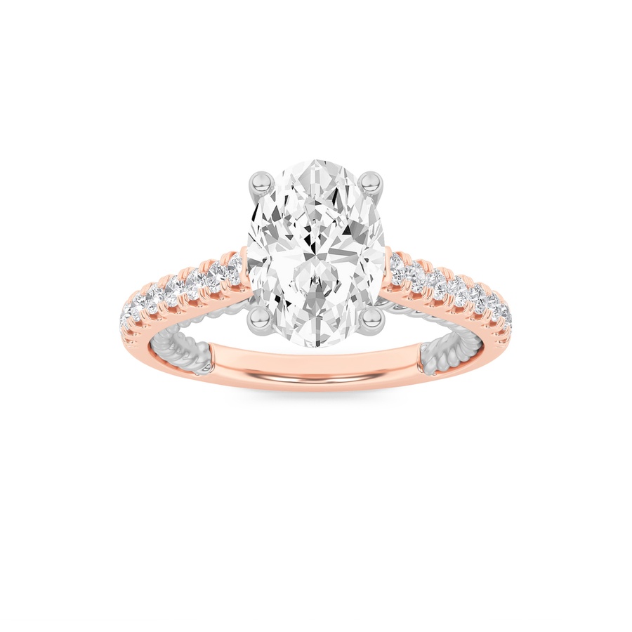 2Cttw Oval Shaped Lab Grown Diamond (F/VS) Two Tone Accented Rope Design Engagement Ring in 14K Gold