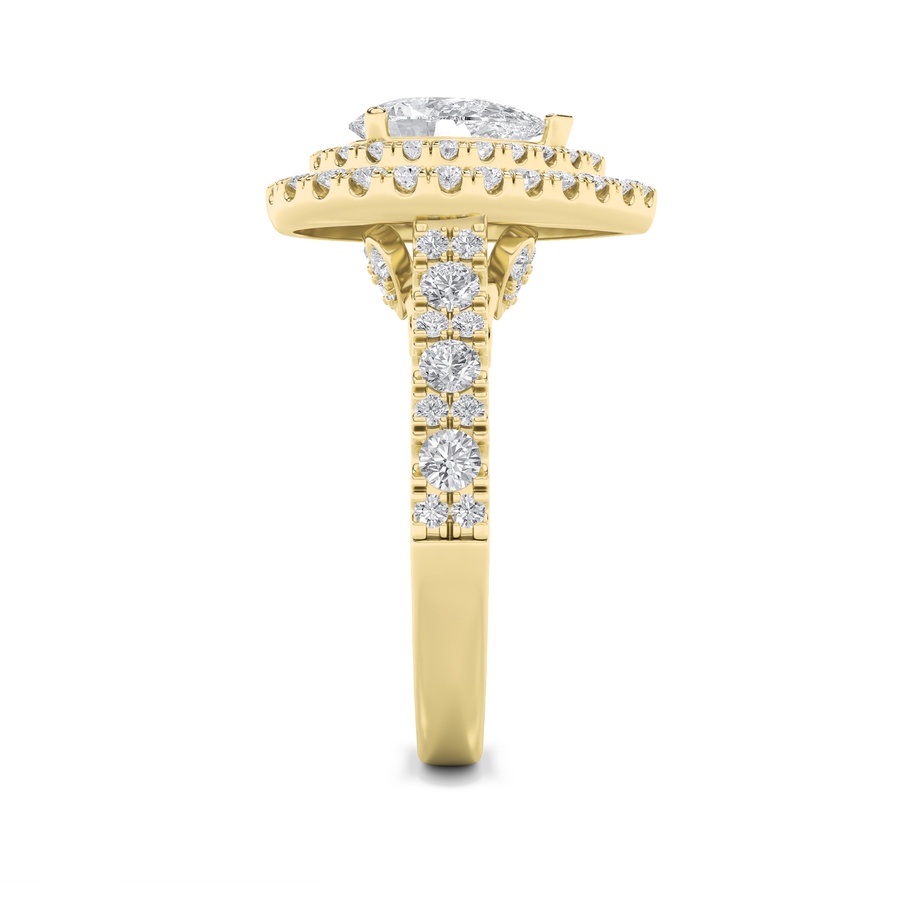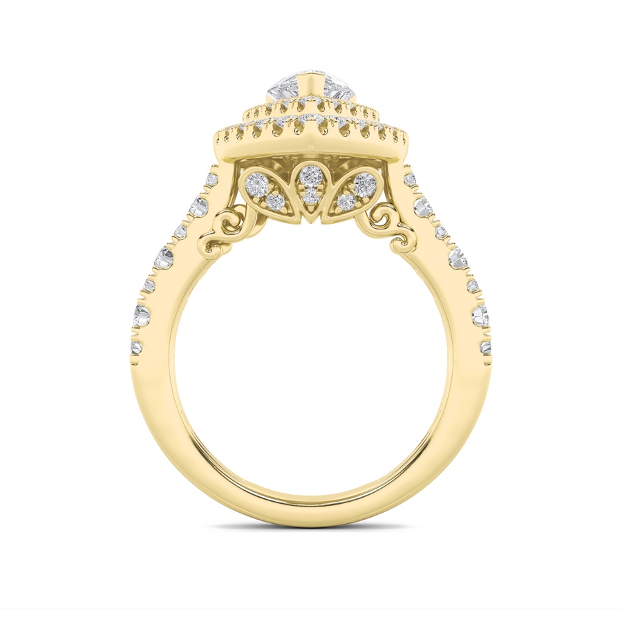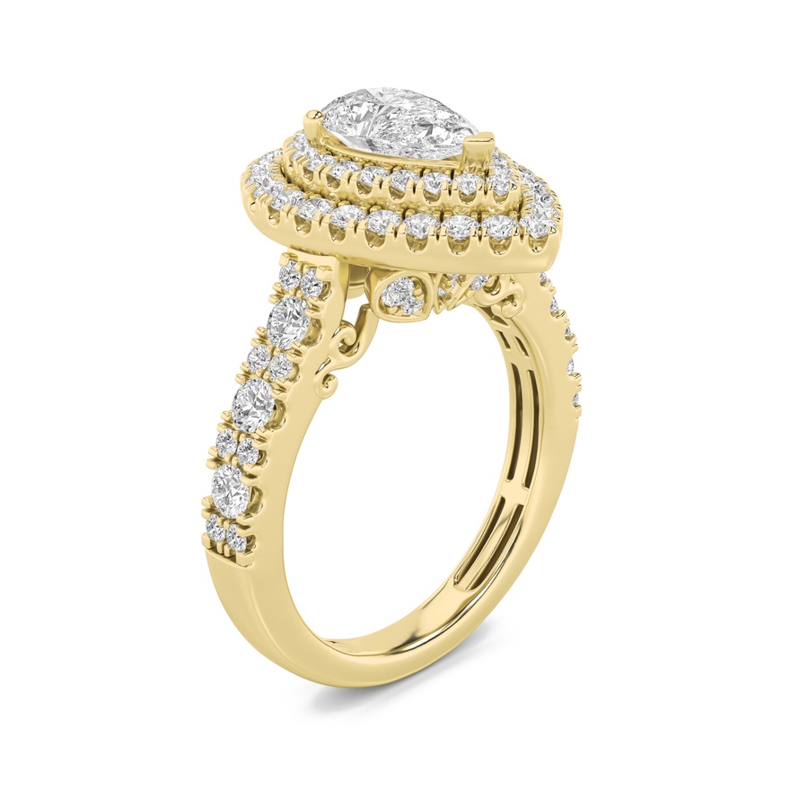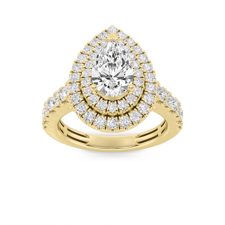 2Cttw Pear Shaped Lab Grown Diamond (F/VS) Double Halo Engagement Ring in 14K Gold