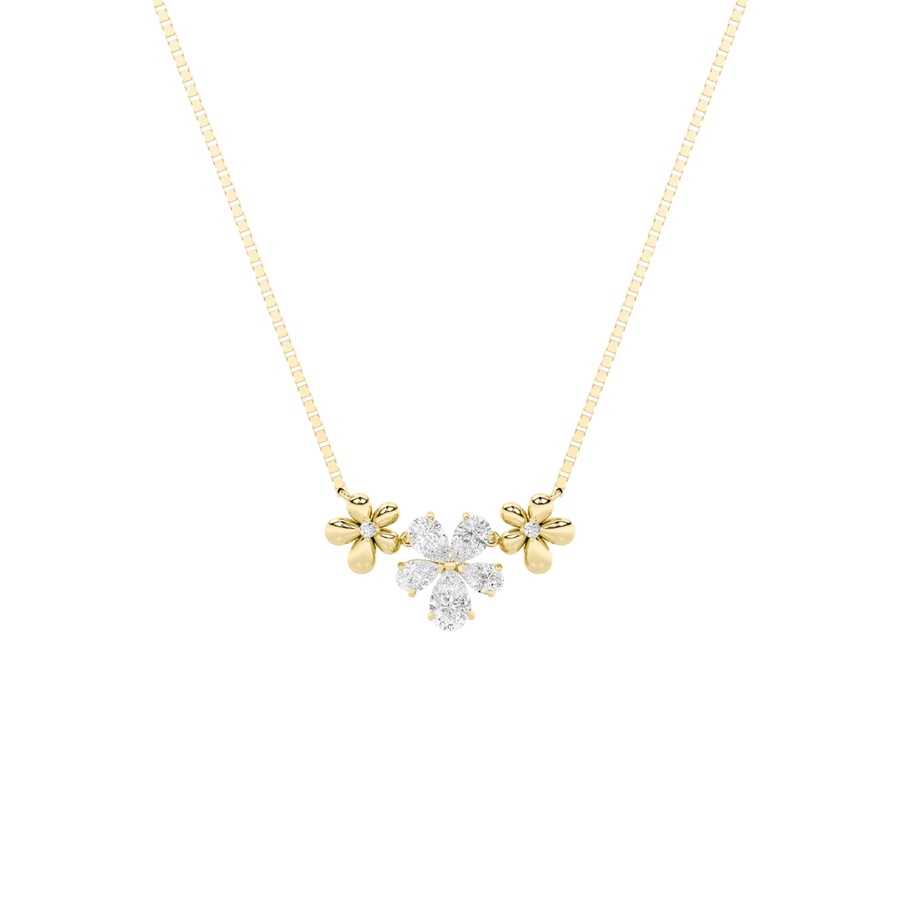 2Cttw Pear Shaped Lab Grown Diamond (F/VS) Fancy Flower Necklace in 14K Gold