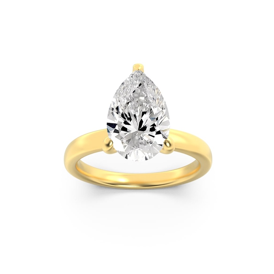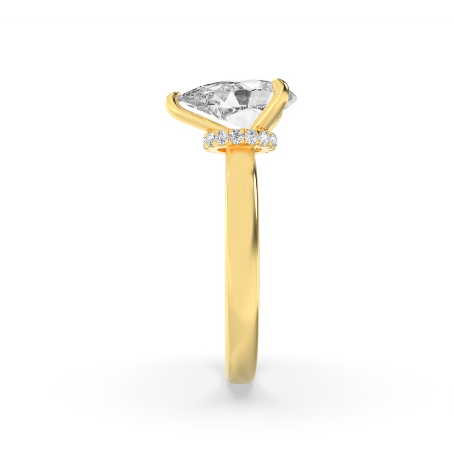 2Cttw Pear Shaped Lab Grown Diamond (F/VS) Hidden Halo Plain Shank Engagement Ring in 14K Gold