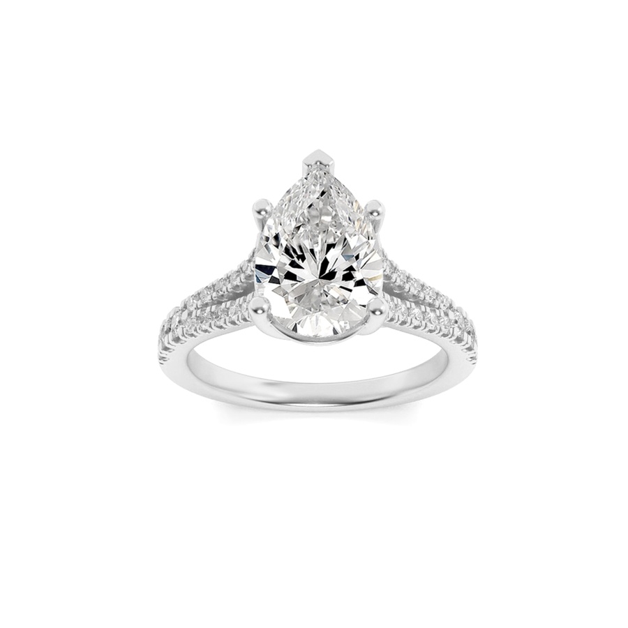 2Cttw Pear Shaped Lab Grown Diamond (F/VS) Split Shank Trellis Engagement Ring in 14K Gold