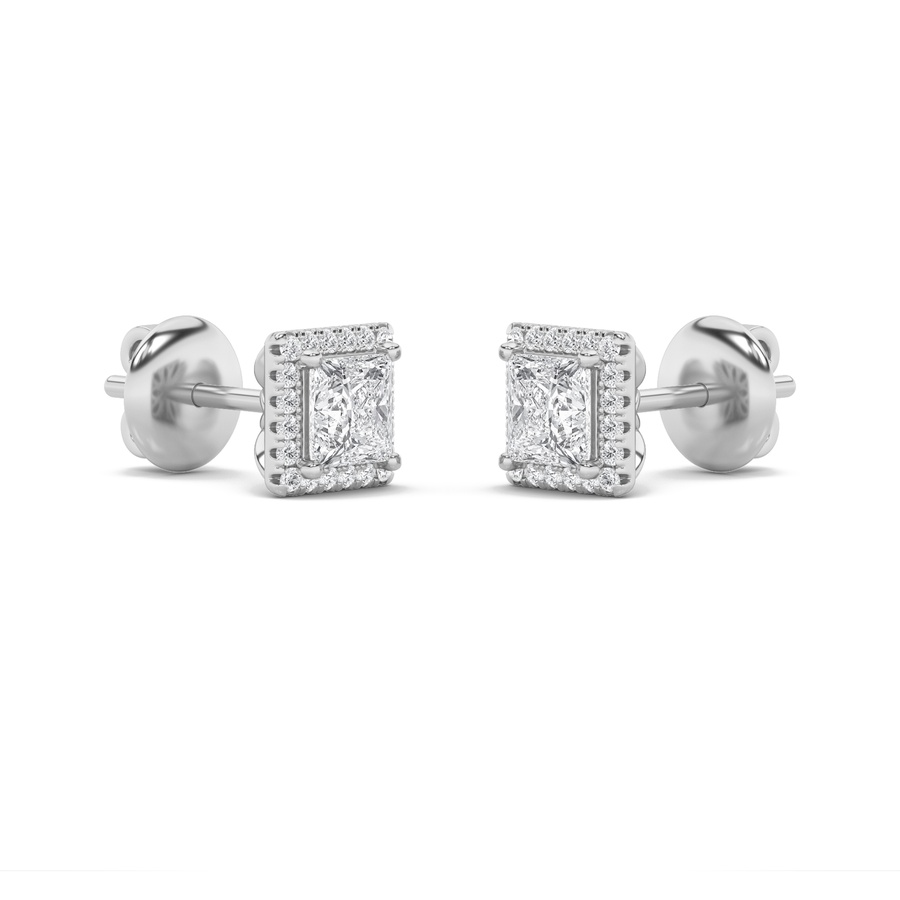 2Cttw Princess Shaped Lab Grown Diamond (F/VS) Halo Stud Earrings in 14K Gold