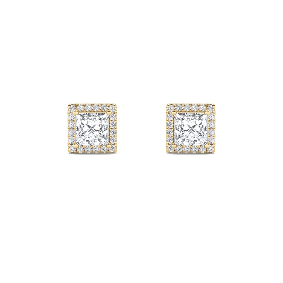 2Cttw Princess Shaped Lab Grown Diamond (F/VS) Halo Stud Earrings in 14K Gold