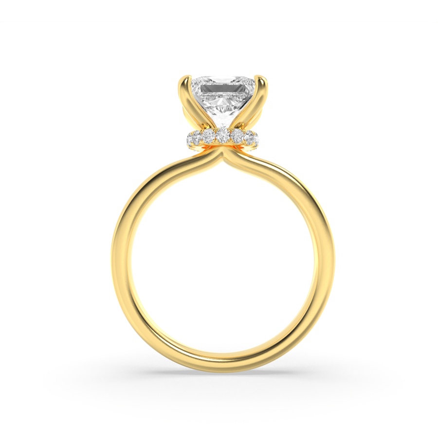 2Cttw Princess Shaped Lab Grown Diamond (F/VS) Hidden Halo Plain Shank Engagement Ring in 14K Gold
