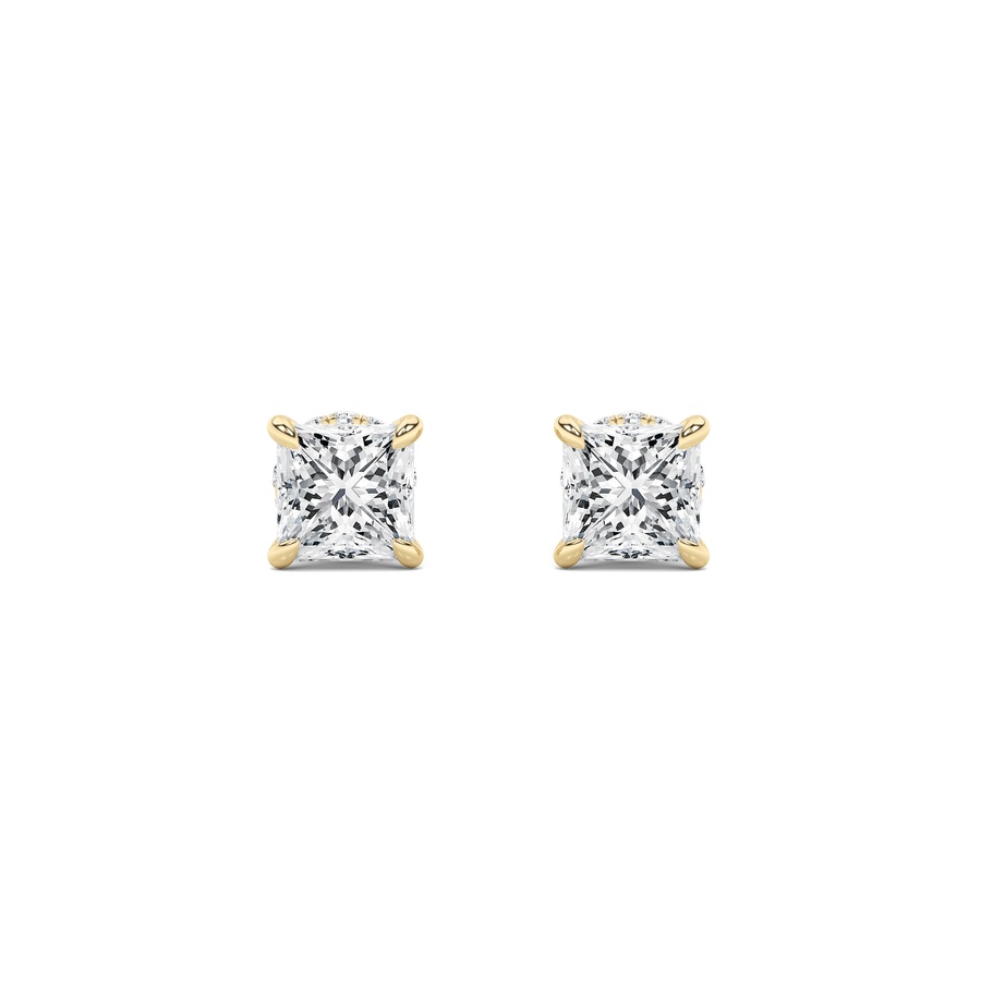 2Cttw Princess Shaped Lab Grown Diamond (F/VS) Hidden Halo Stud Earrings in 14K Gold