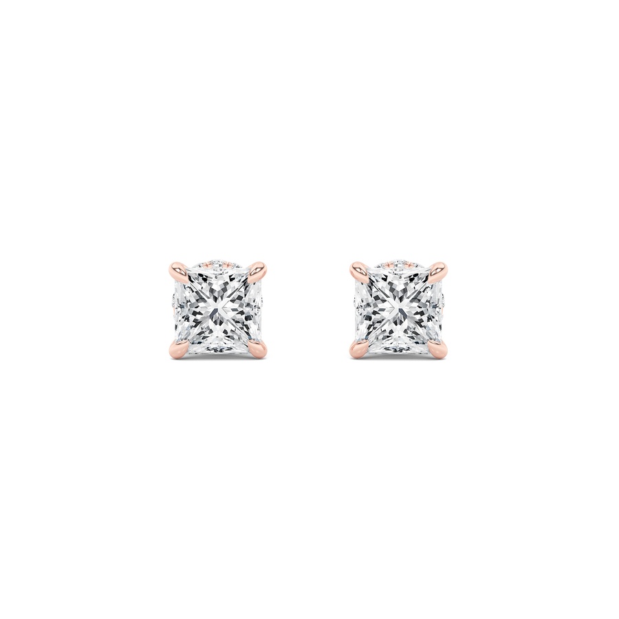 2Cttw Princess Shaped Lab Grown Diamond (F/VS) Hidden Halo Stud Earrings in 14K Gold