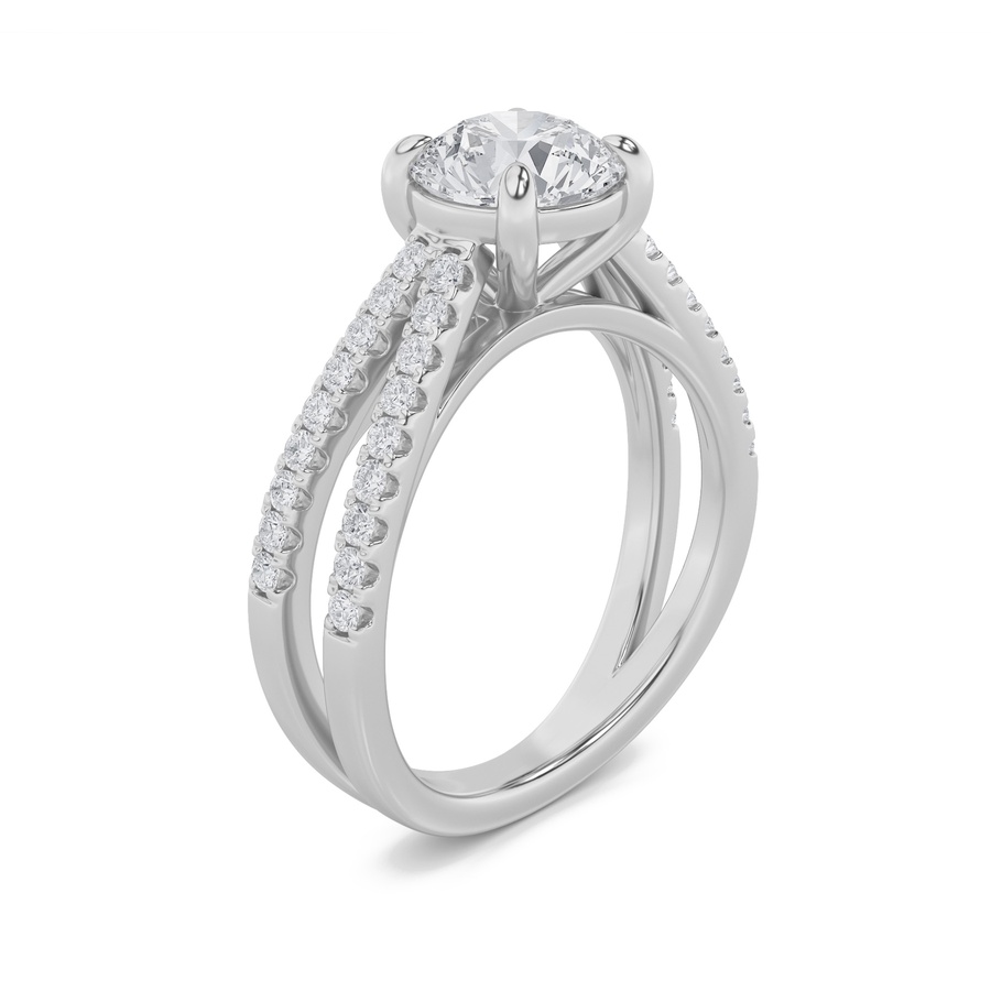 2Cttw Round Shaped Lab Grown Diamond (F/VS) Cross Shank Accented Engagement Ring in 14K Gold