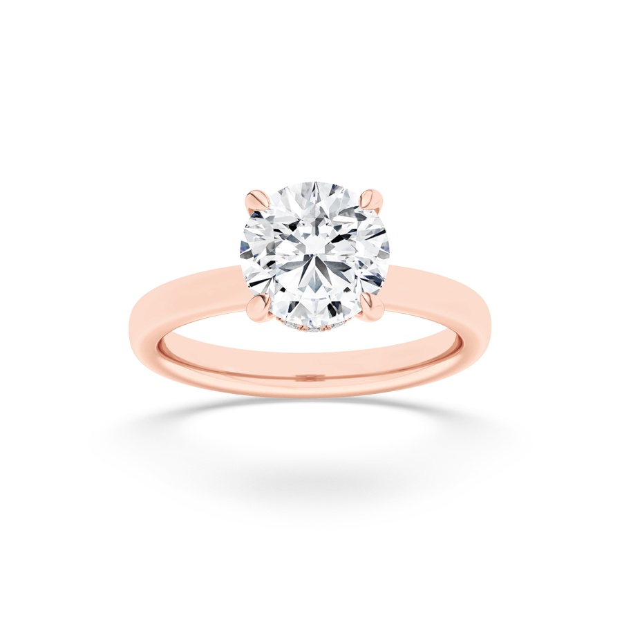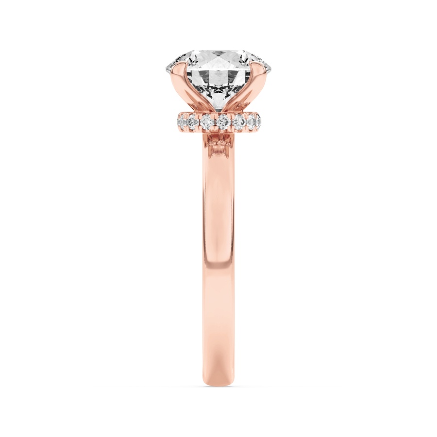 2Cttw Round Shaped Lab Grown Diamond (F/VS) Hidden Halo Plain Shank Engagement Ring in 14K Gold