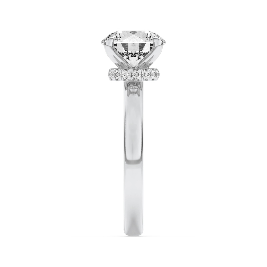 2Cttw Round Shaped Lab Grown Diamond (F/VS) Hidden Halo Plain Shank Engagement Ring in 14K Gold