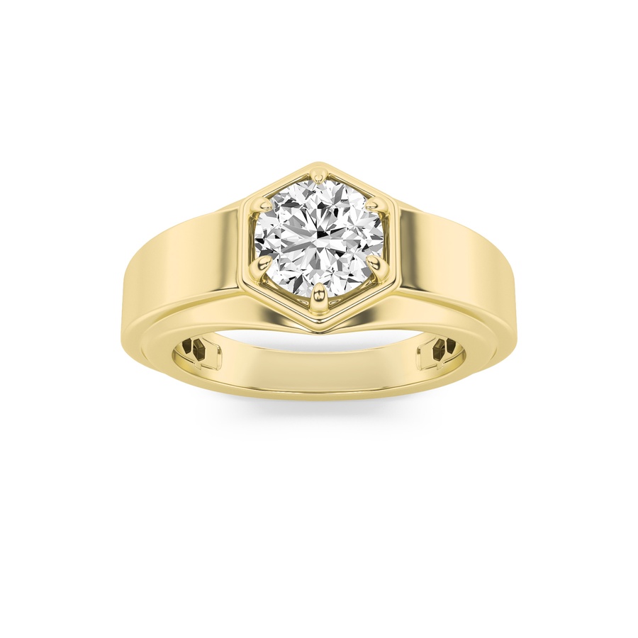 2Cttw Round Shaped Lab Grown Diamond (F/VS) Mens Ring in 14K Gold