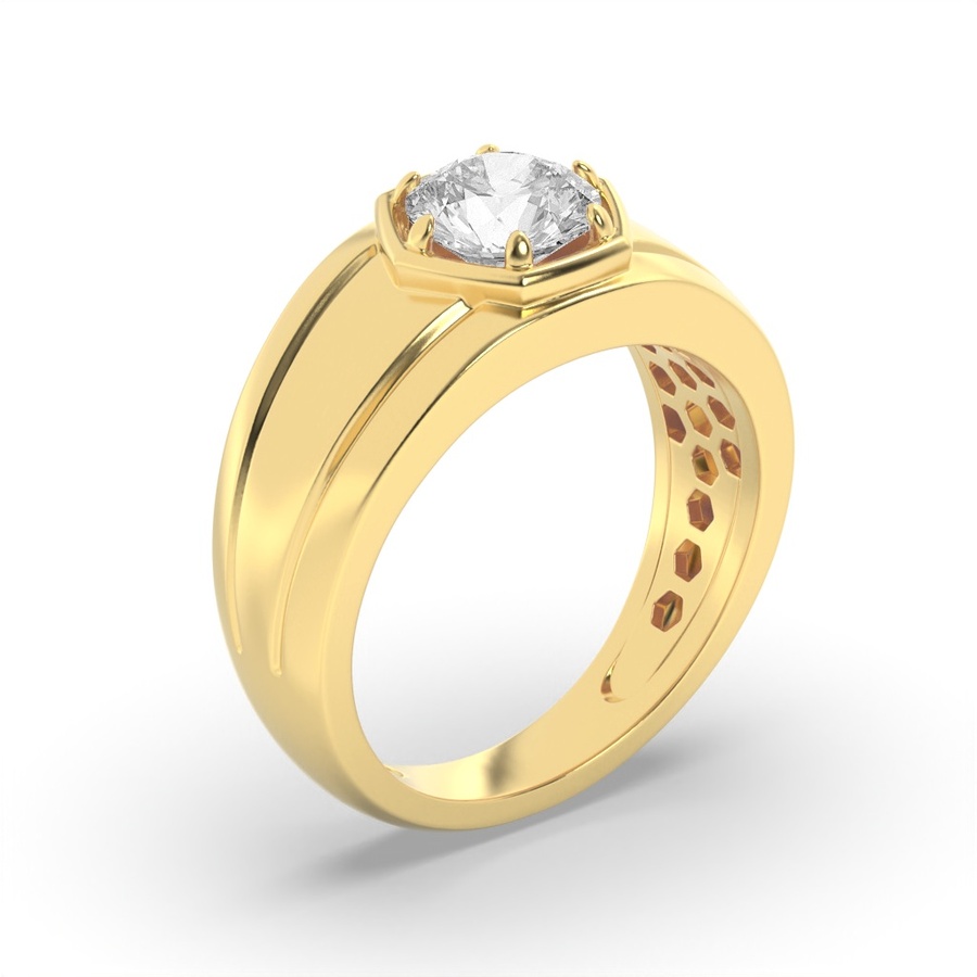 2Cttw Round Shaped Lab Grown Diamond (F/VS) Mens Ring in 14K Yellow Gold