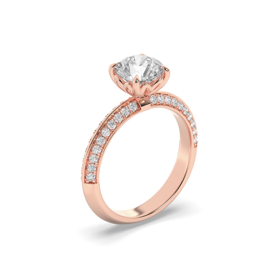 2Cttw Round Shaped Lab Grown Diamond (F/VS) Micro Pave Knife Edge Accent Ring in 14K Gold