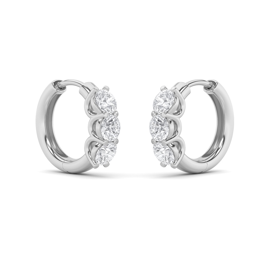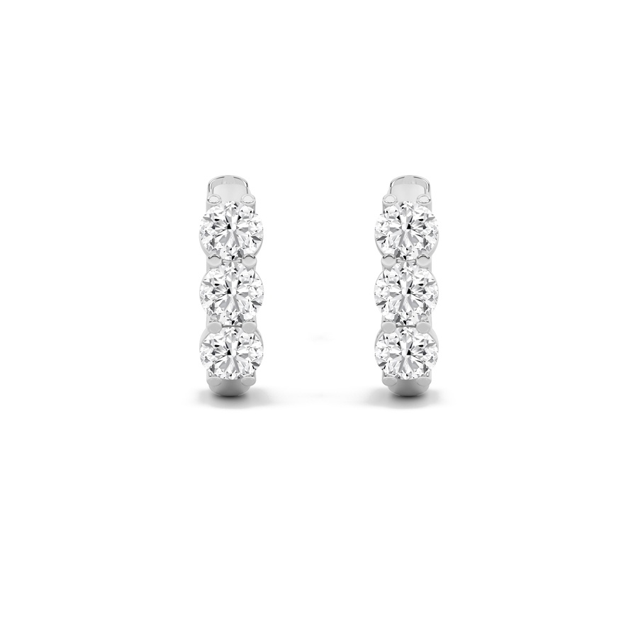 2Cttw Round Shaped Lab Grown Diamond (F/VS) Three Stone Huggie Earrings in 14K Gold